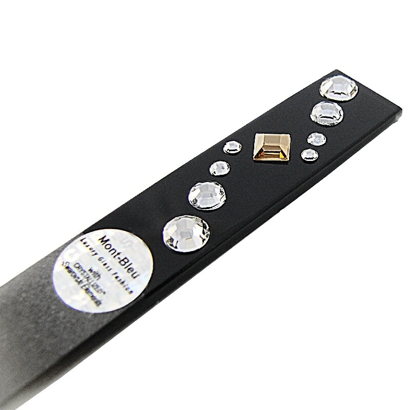 L'insolita forma quadrata del manico e i cristalli Swarovski quadrati rendono uniche queste lime in vetro. Le lime in vetro Mont Bleu sono realizzate in vetro temperato ceco .