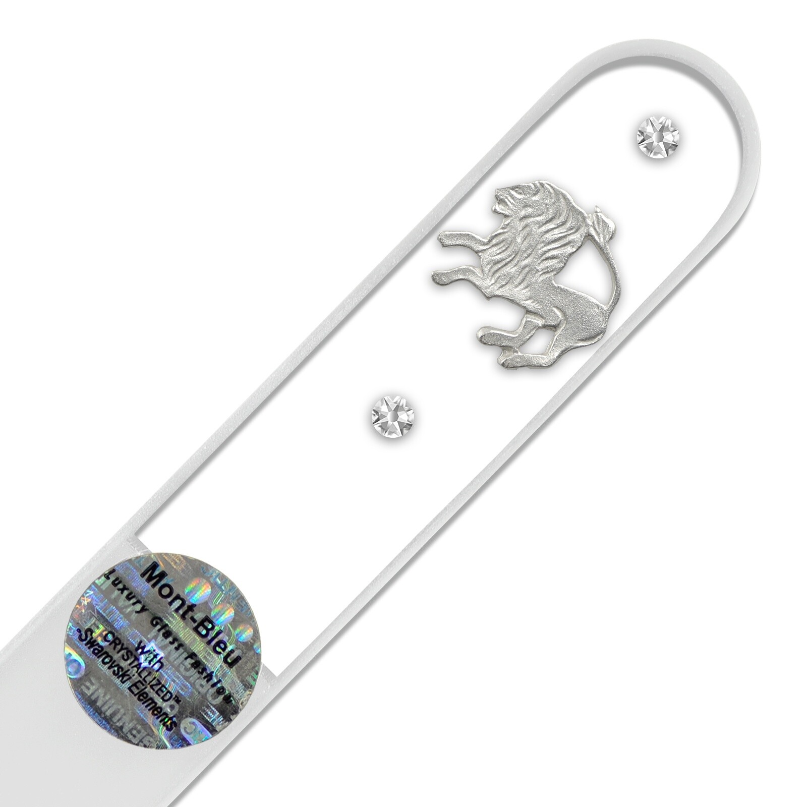 Lima per unghie in vetro con il segno zodiacale «Leone». Lunghezza 135 mm.