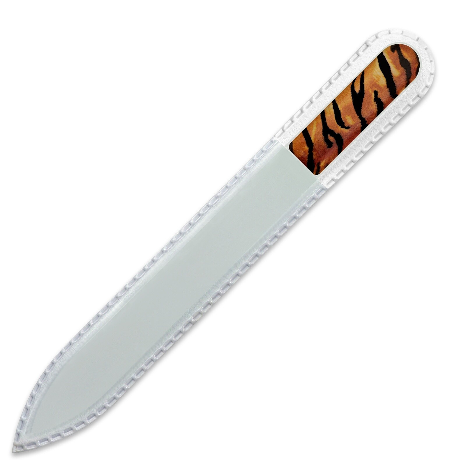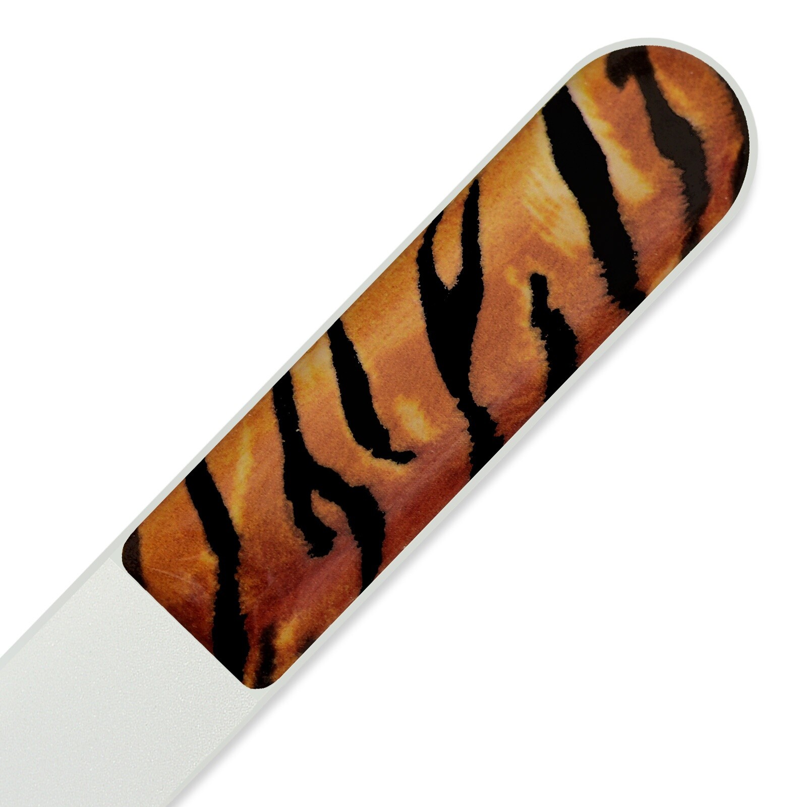 Lima per unghie in vetro dalla Repubblica Ceca "Tiger" con un adesivo 3D colorato. Lunghezza della lima 135 mm.