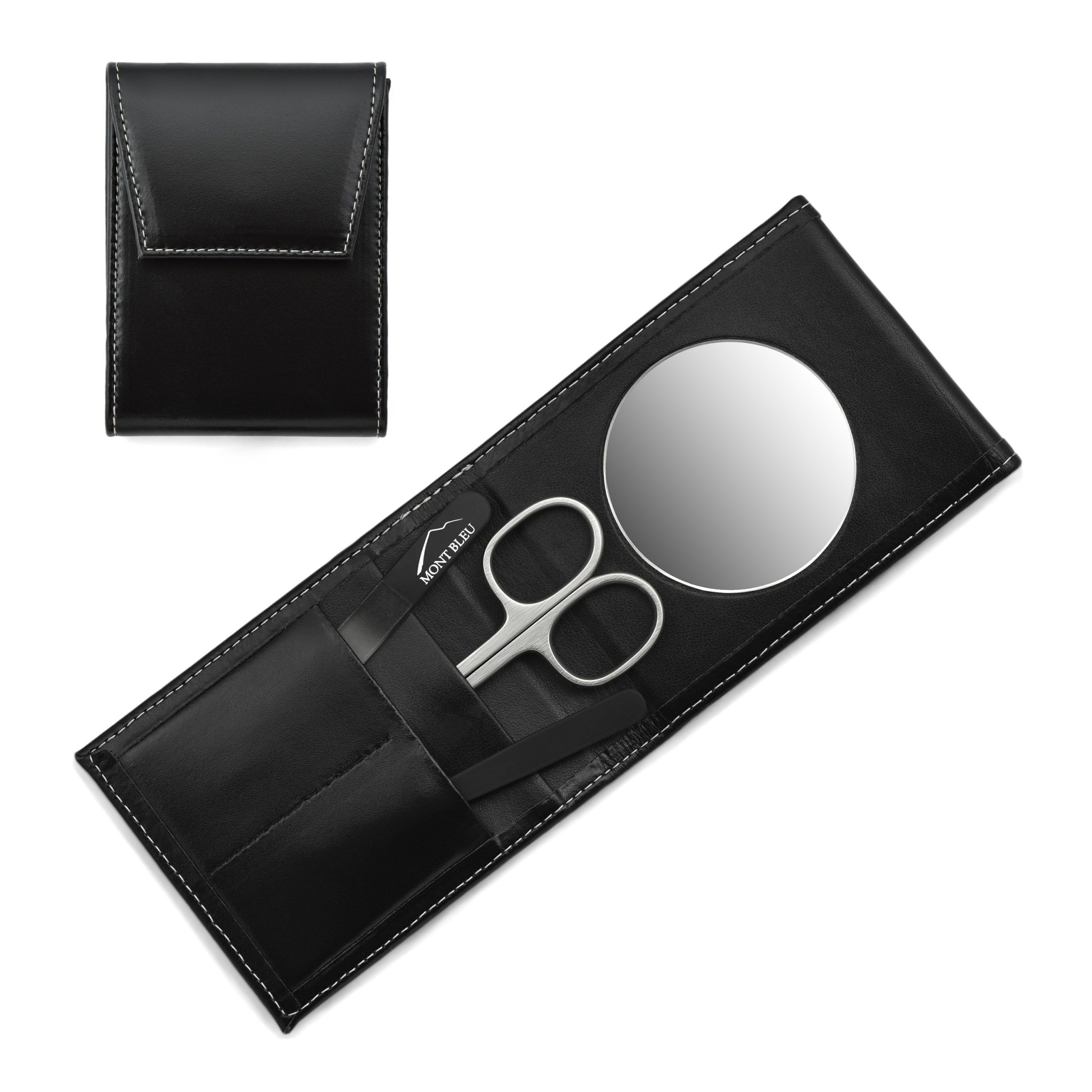 Set manicure 3 pezzi Mont Bleu in custodia in pelle nera premium con lima per unghie a specchio e cristallo