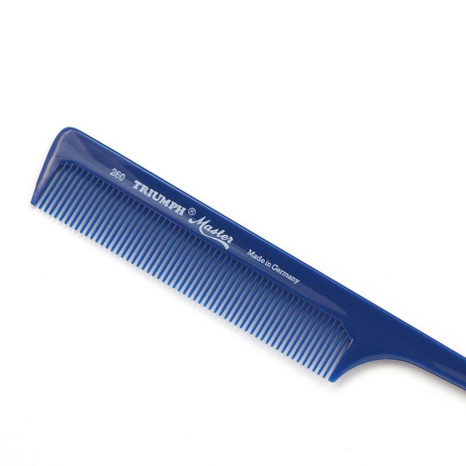 Master pettine a coda in plastica di colore blu con effetto antistatico e protezione dei capelli durante la toelettatura.