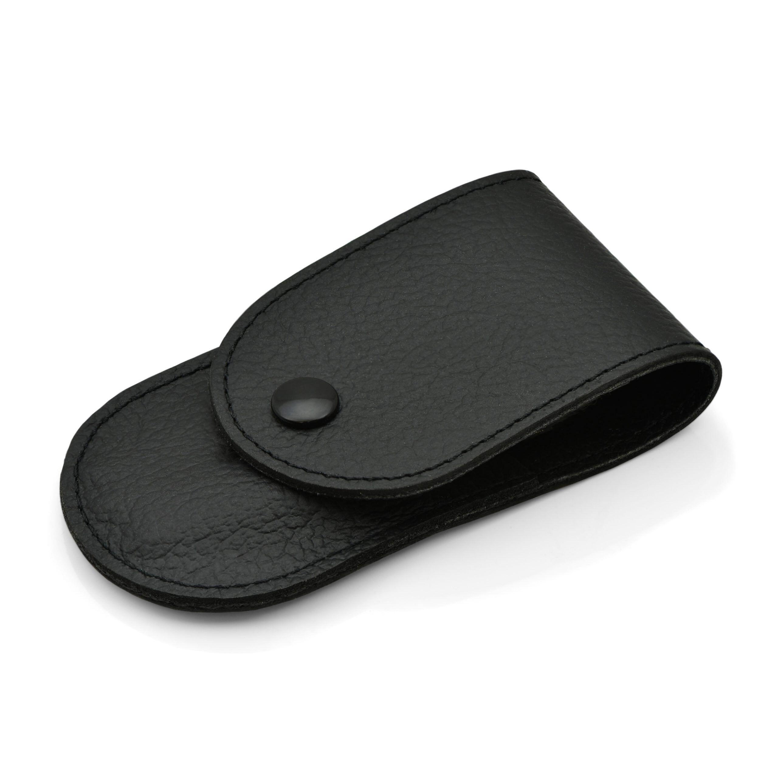 Маникюрный набор, черная кожа, 3 части: ножницы для ногтей, пинцет и пилочка.