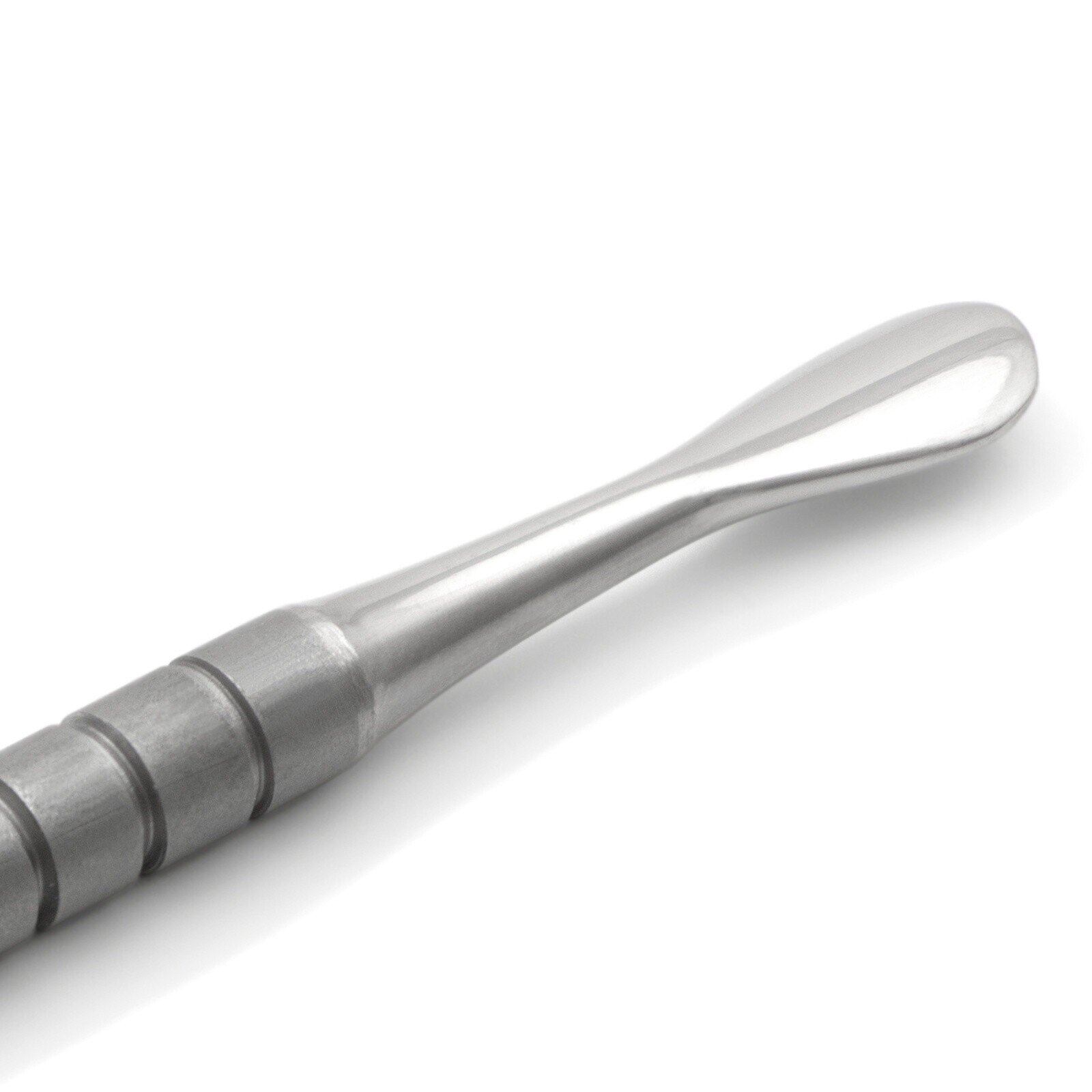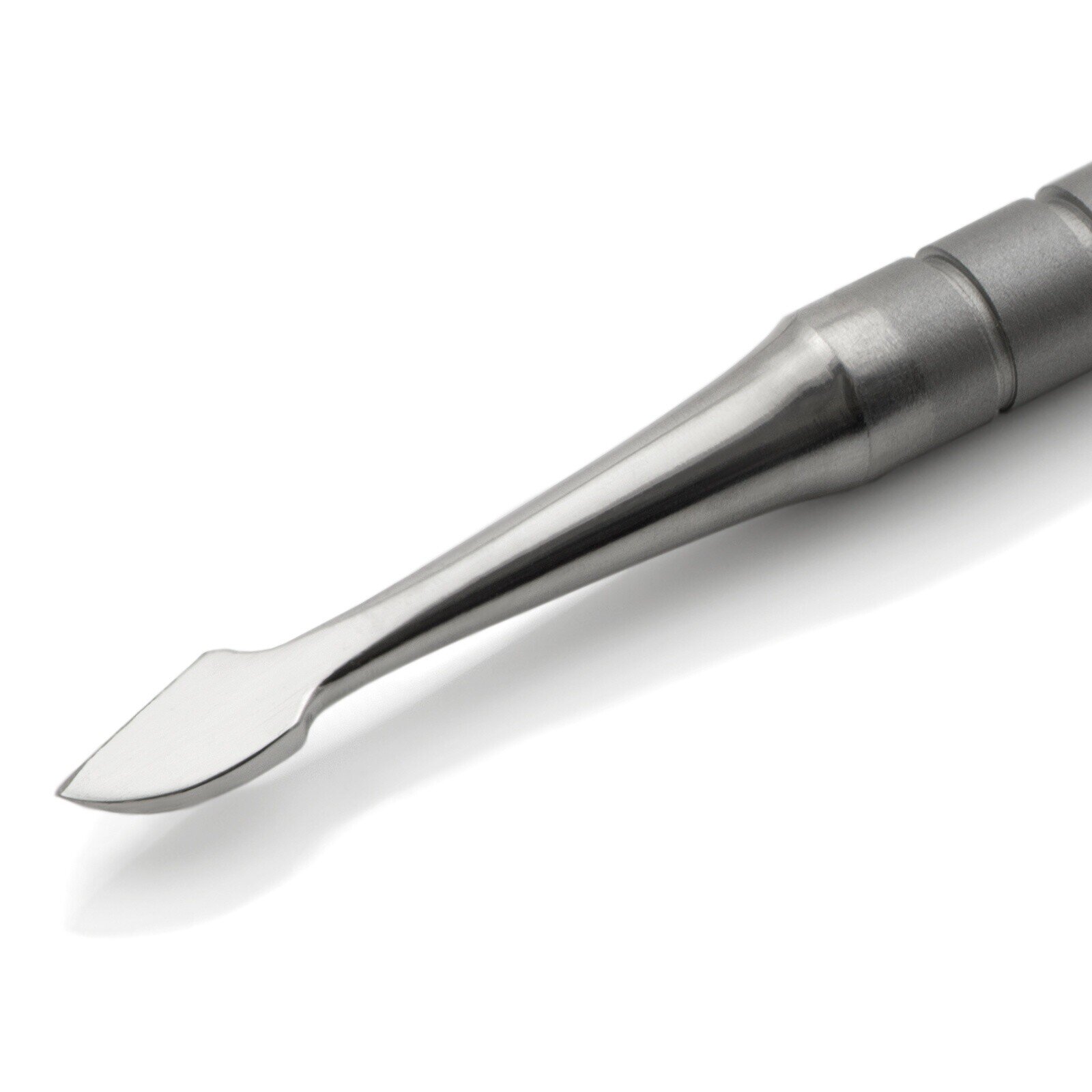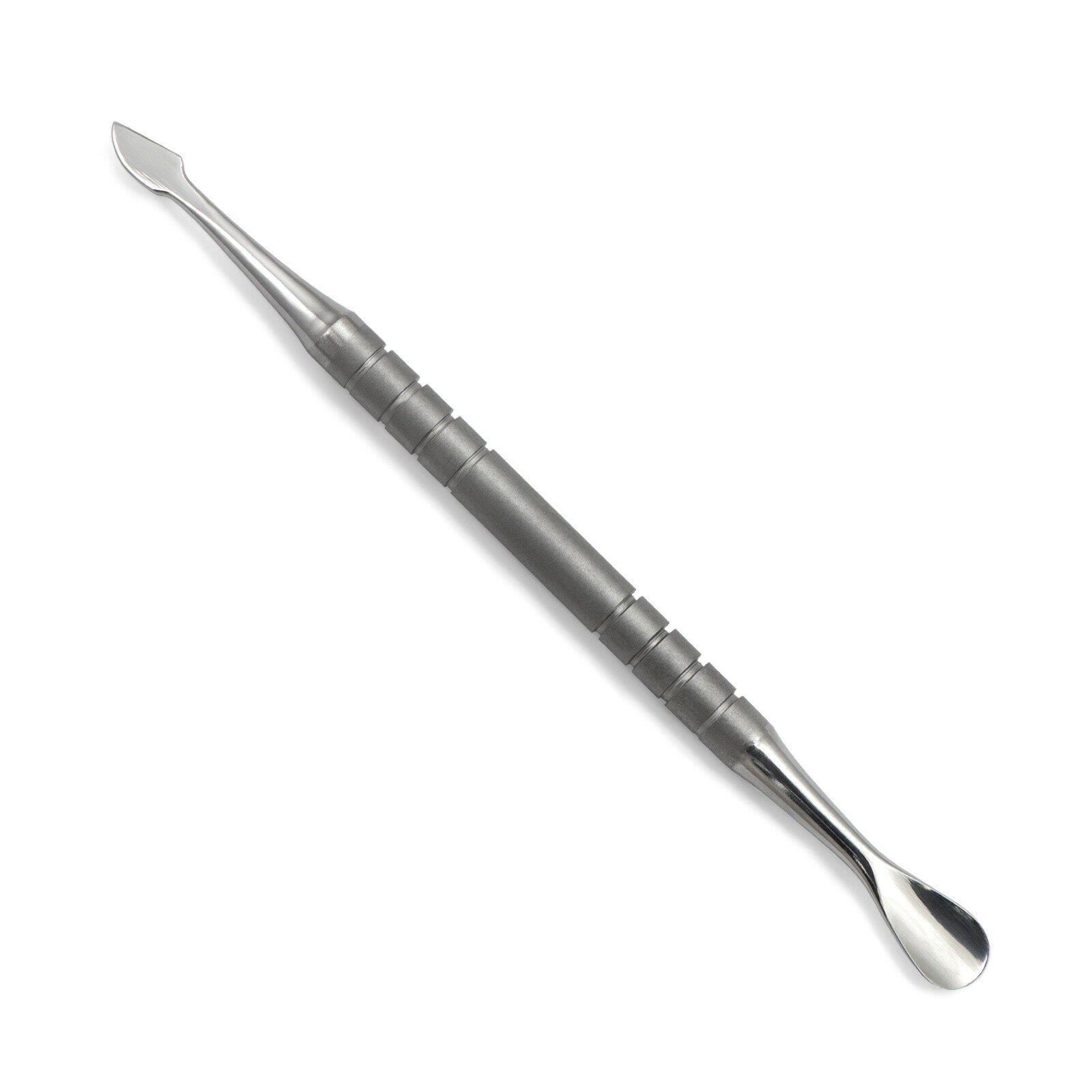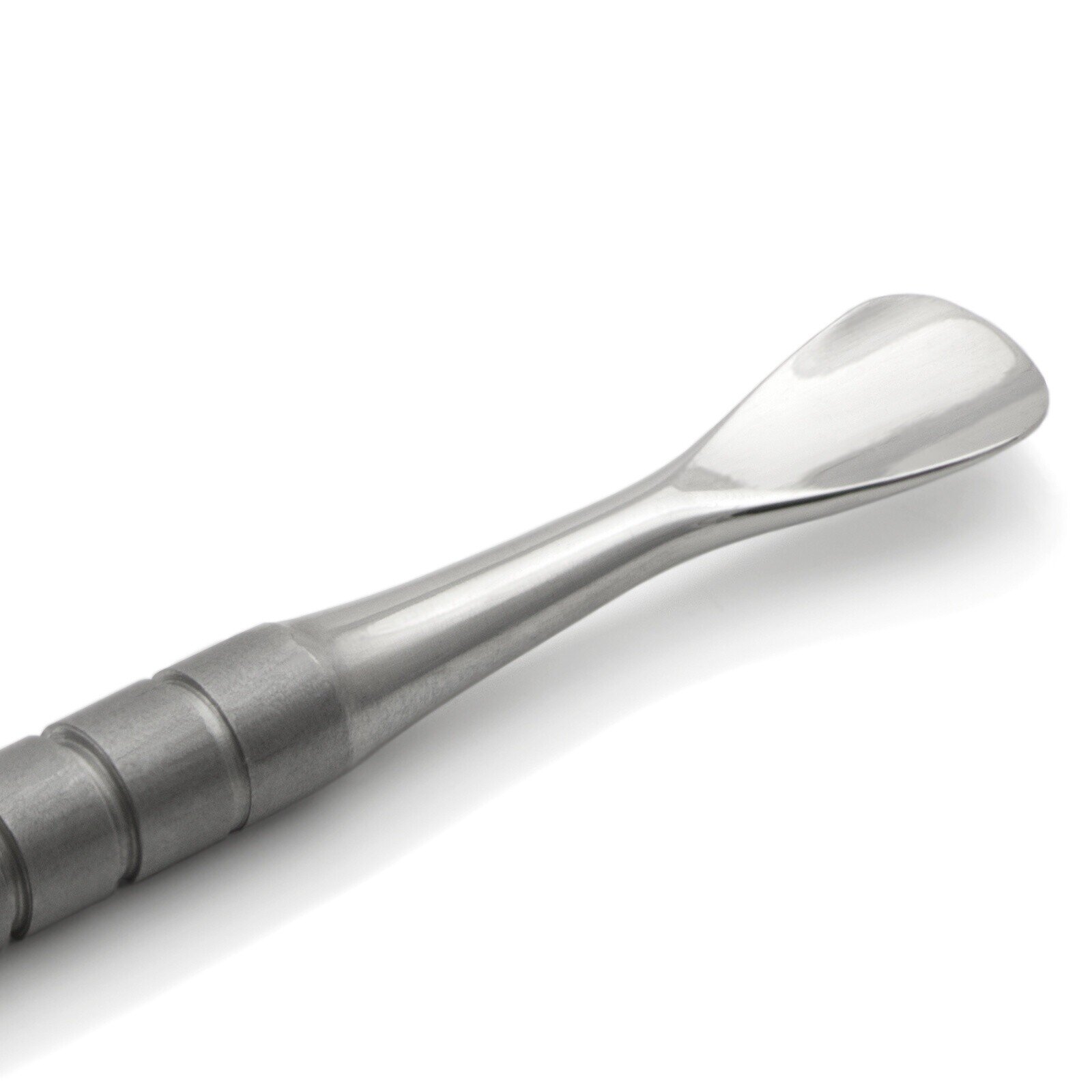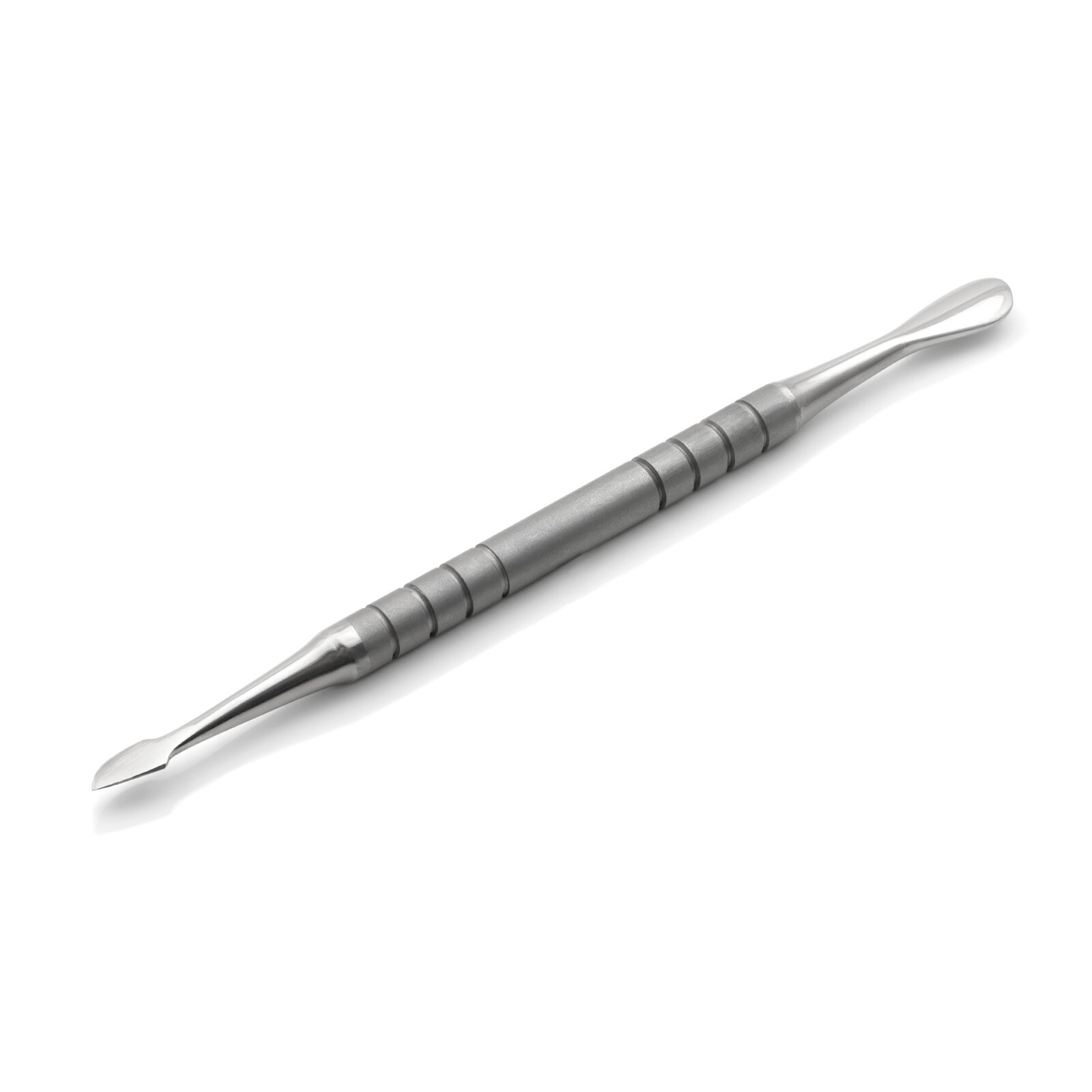 Этот инструмент «два в одном» представляет собой нож и толкатель для кутикулы размером 11 см или чуть менее пяти дюймов в длину. Он сделан в Германии из высококачественной нержавеющей стали и станет незаменимым дополнением любого маникюрного набора.