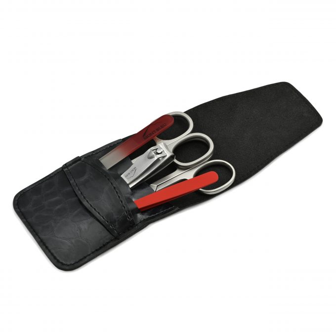With these Mont Bleu manicure sets in faux-leather cases, you will have strength and durability at your fingertips, making them perfect for the seasoned travellers and people who needs quality instruments which are capable of standing up to the test of time. Black ‘Anna’ case.