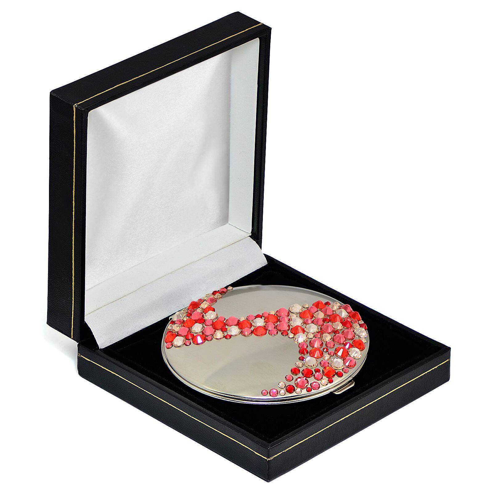 Элегантное компактное зеркало “Кораллы II-красные”, декорированное кристаллами. Диаметр 70мм.