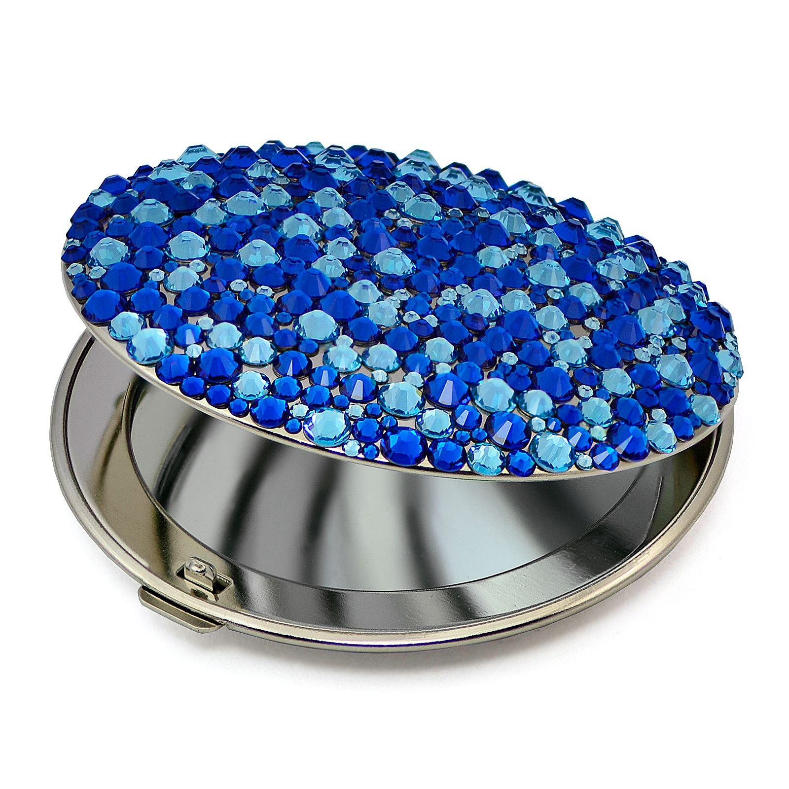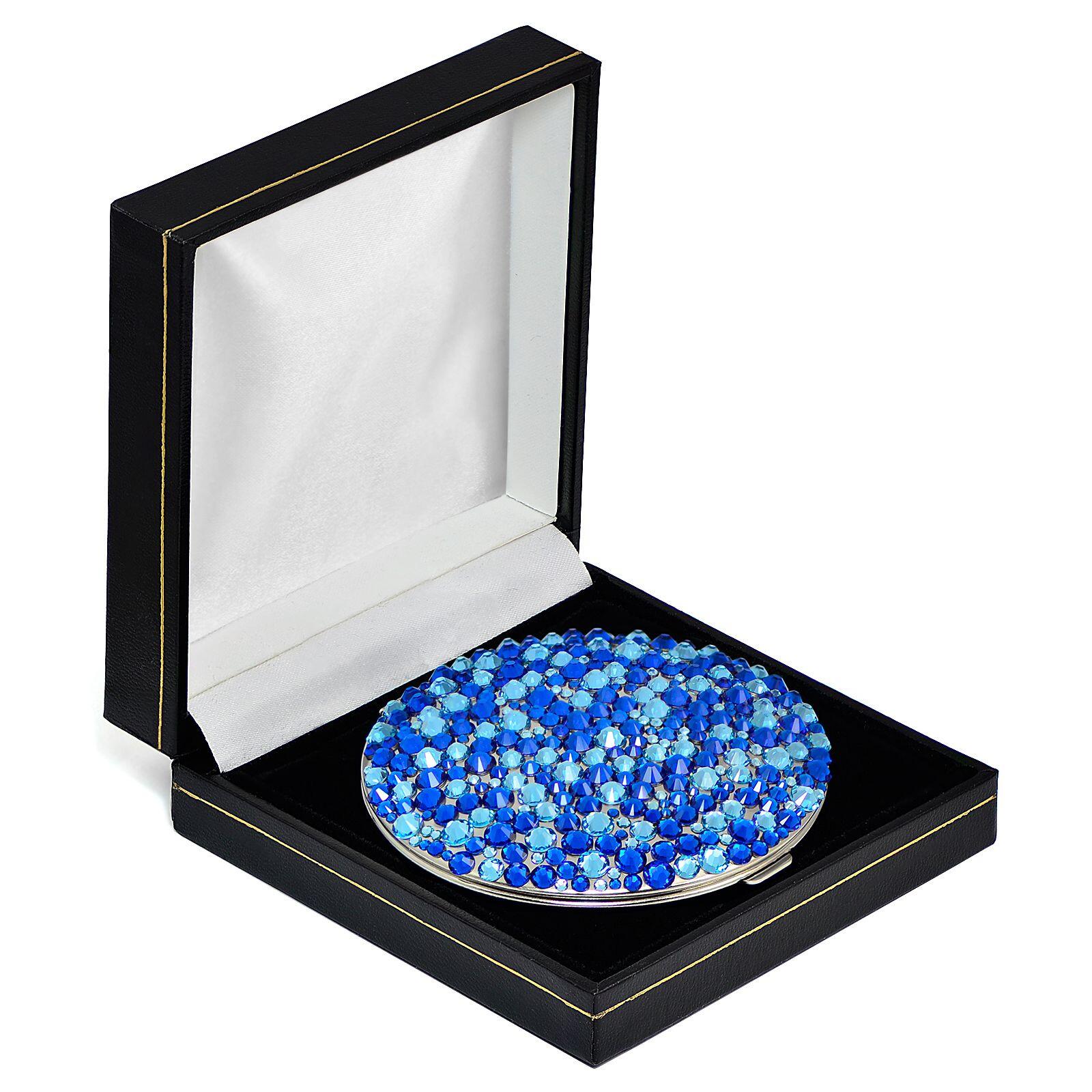 Элегантное компактное зеркало “Кораллы V-синие”, декорированное кристаллами. Диаметр 70мм.