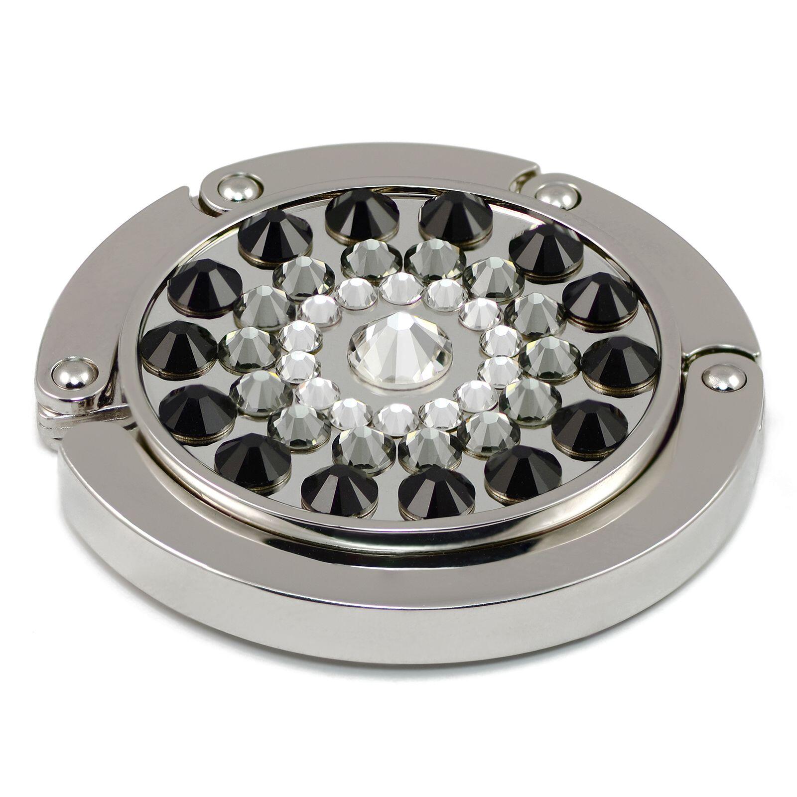 Sofisticado colgador de bolso decorado a mano con cristales Swarovski. Uno de los accesorios obligados para la mujer moderna; es también un sencillo, pero práctico regalo para una amiga.
