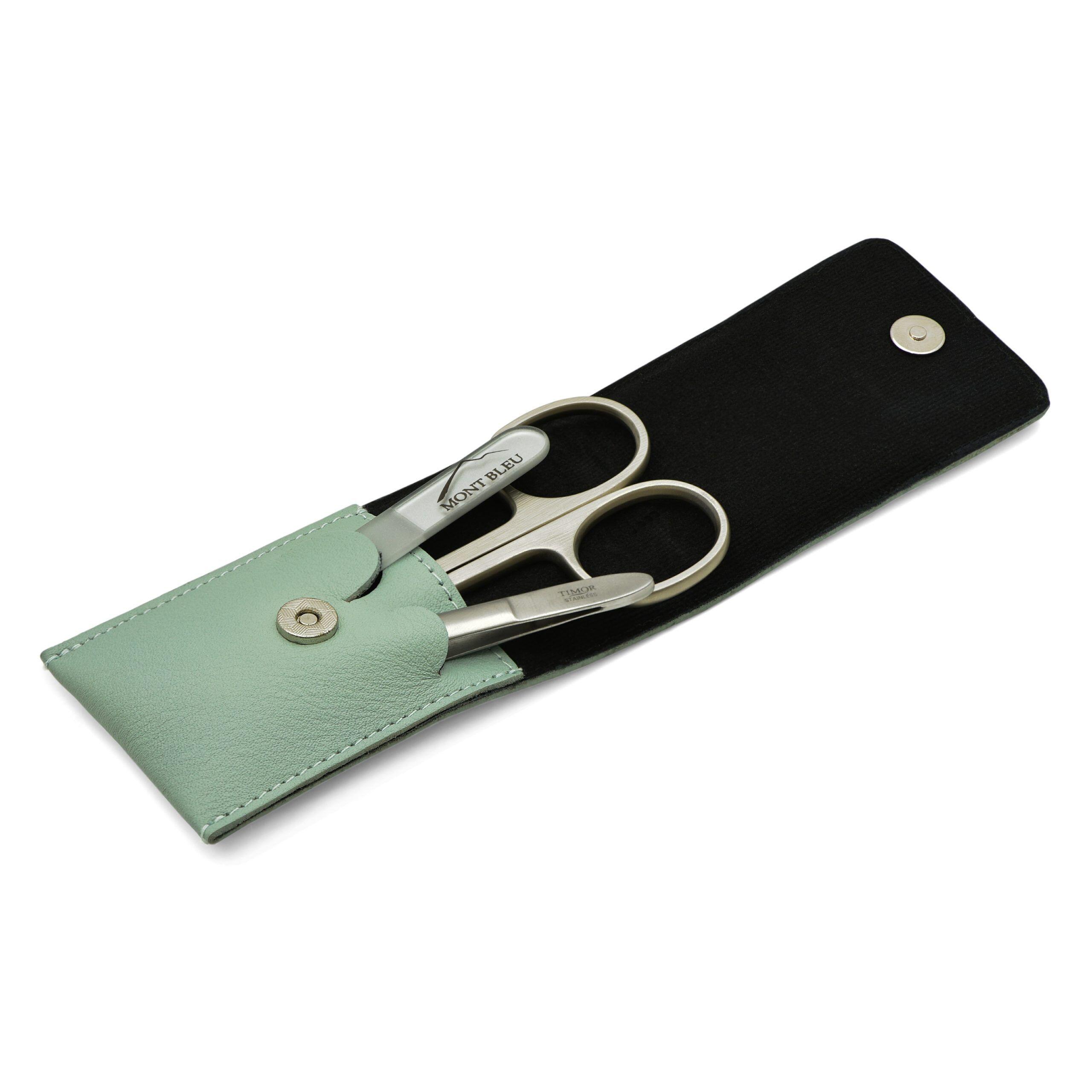 Juego de manicura Timor de 3 piezas de Giesen & Forsthoff en estuche de cuero verde menta