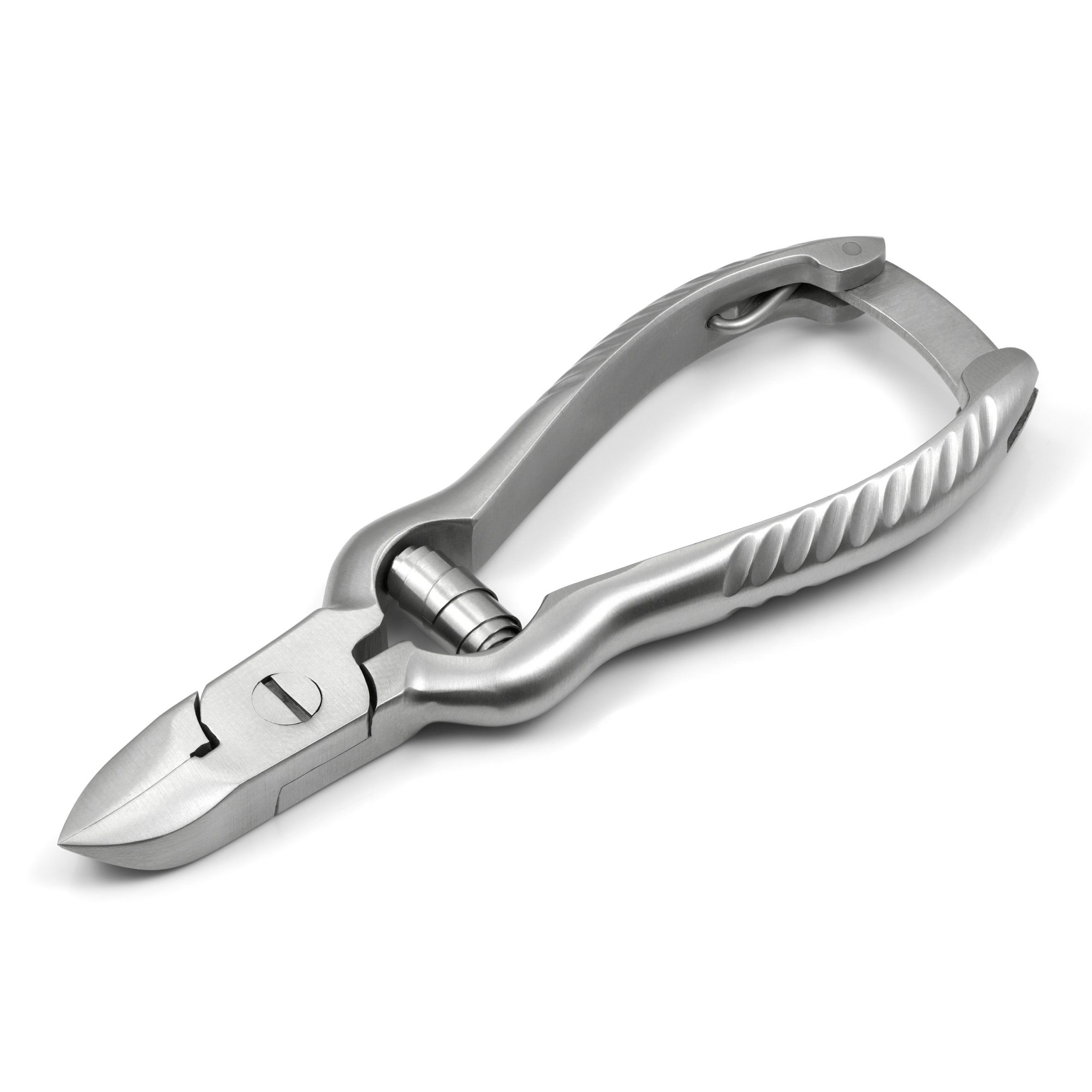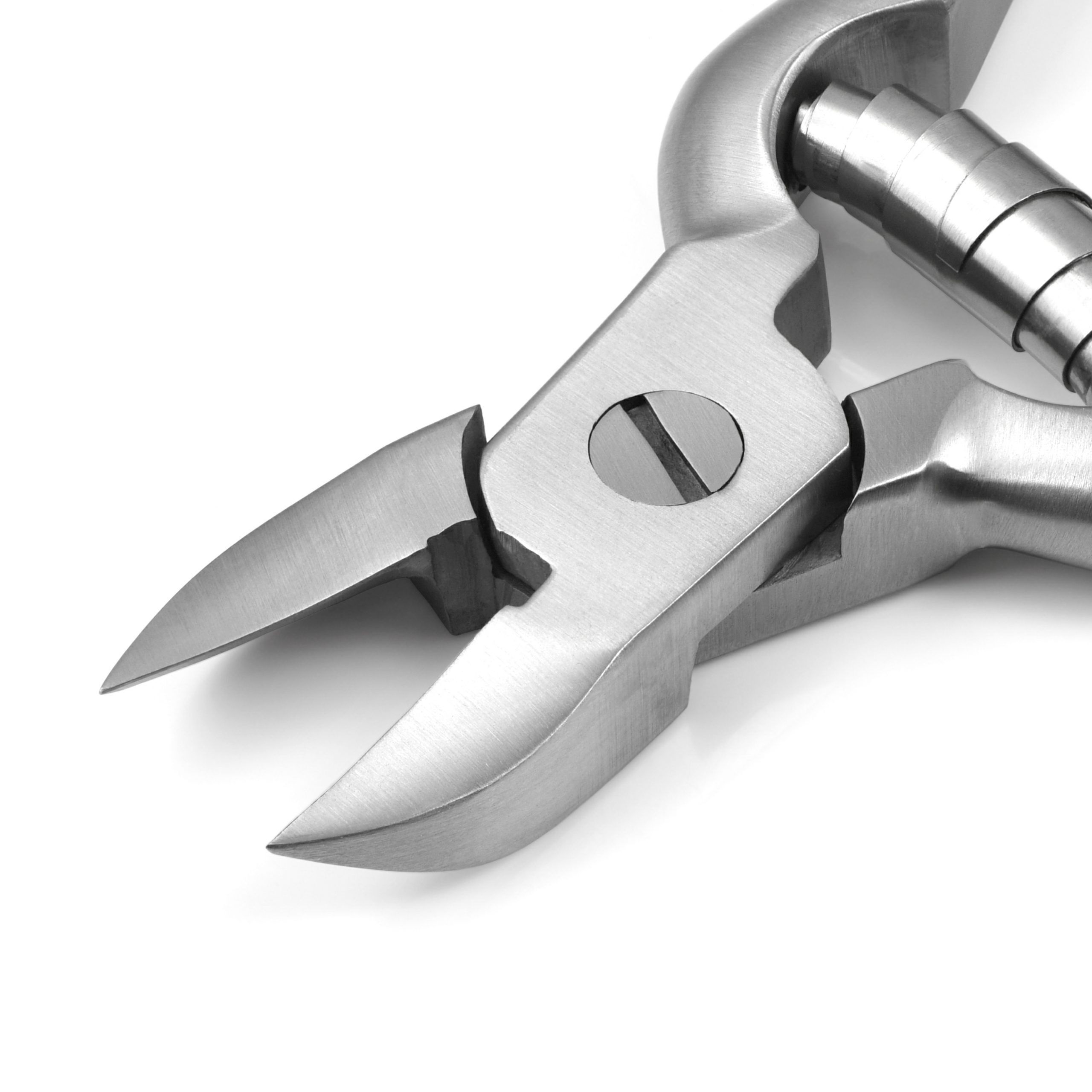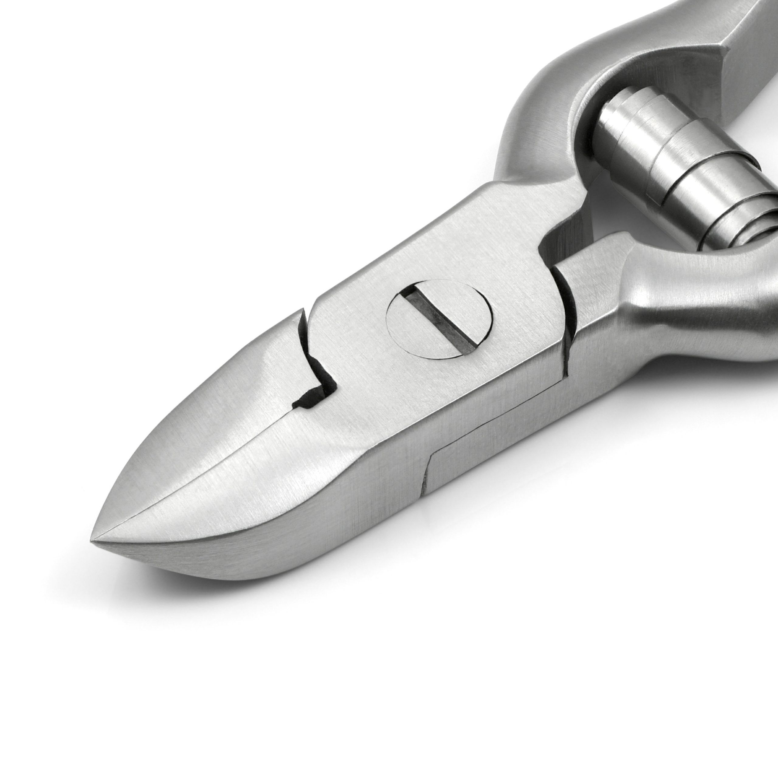 Alicates de uñas de alta calidad para manicura y pedicura. Las mandíbulas en ángulo son perfectas para cortes fáciles y limpios de las uñas sin romperlas. Están hechos especialmente para cortar sin esfuerzo las uñas gruesas del pie.
