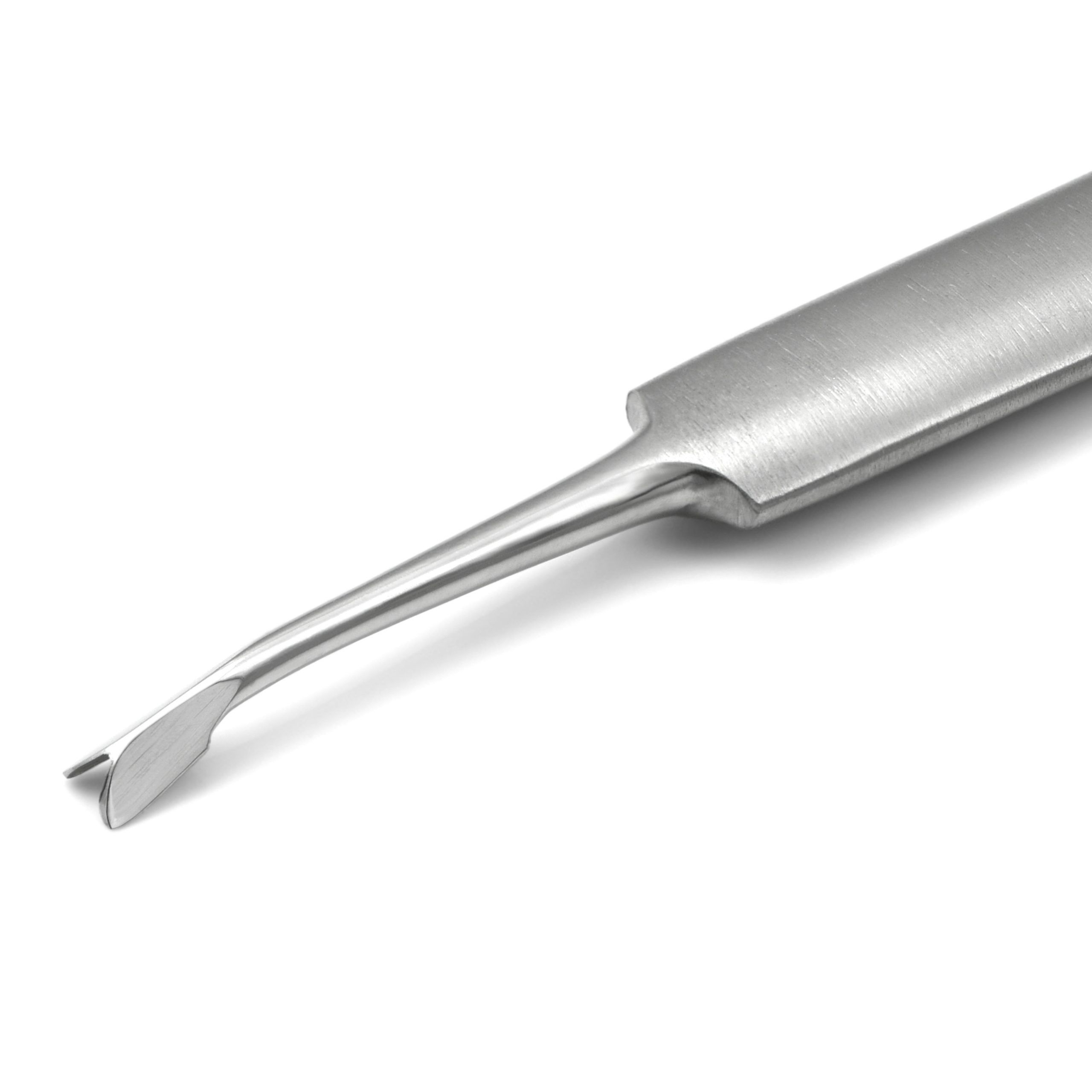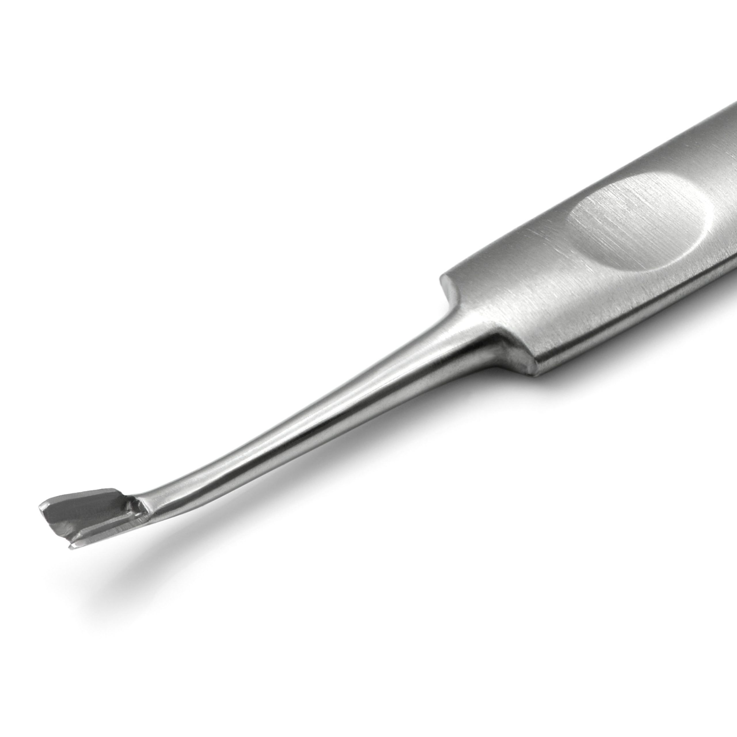 Fabricada en Alemania, esta exquisita pieza te dará cutículas perfectamente formadas en todo momento. Con su borde de tierra extra afilado que le garantiza un corte uniformemente suave, se desliza sobre la uña para eliminar la cutícula. Puede estar seguro de un manejo seguro con su mango plano ergonómico.