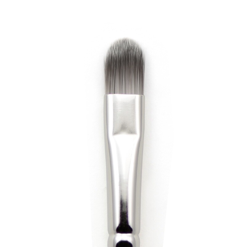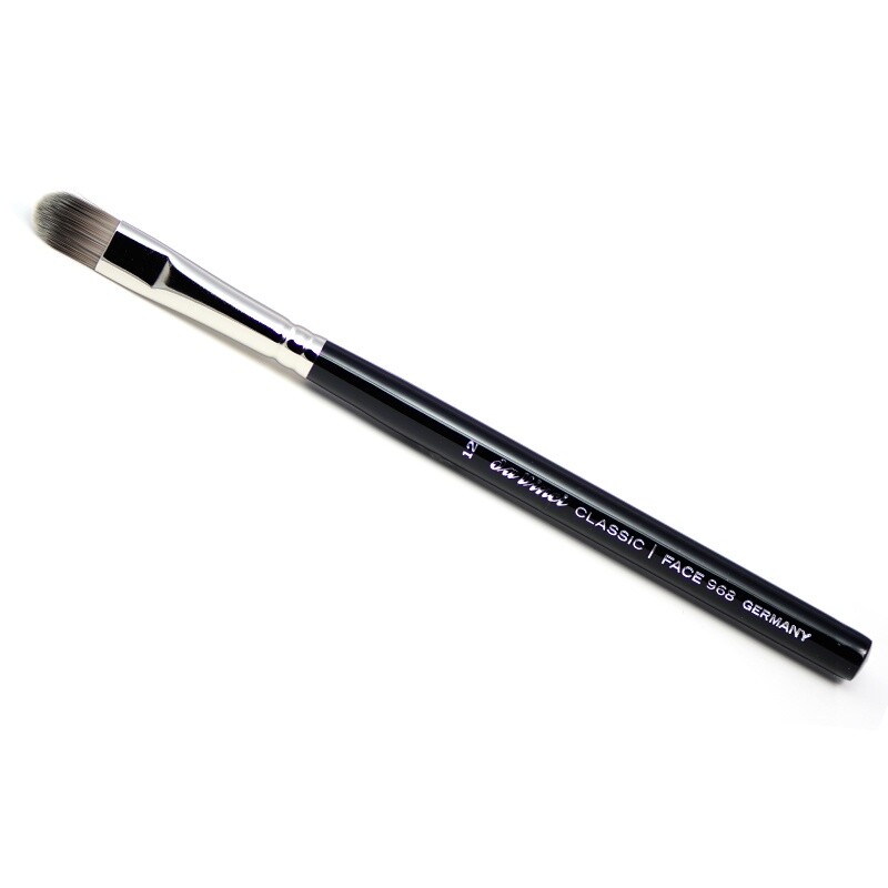Pincel Corrector de fibras sintéticas. Algunas caracteristicas de la fibra sintética: de puntas finas – similares a las de pelo natural. Su origen sintético provee a las fibras de una vida útil de larga duración y un fácil mantenimiento en su limpieza, además de ser extraordinariamente elásticas y robustas. Estas fibras son también una alternativa razonable para proteger los recursos naturales. Ideal para personas con alergia al pelo natural. La brocha de maquillaje tiene una punta en forma ovalada. El mango de la brocha o pincel está fabricado en madera de haya; la longitud total de la brocha de maquillaje es 160 mm. La brocha se presenta en envoltorio individual.