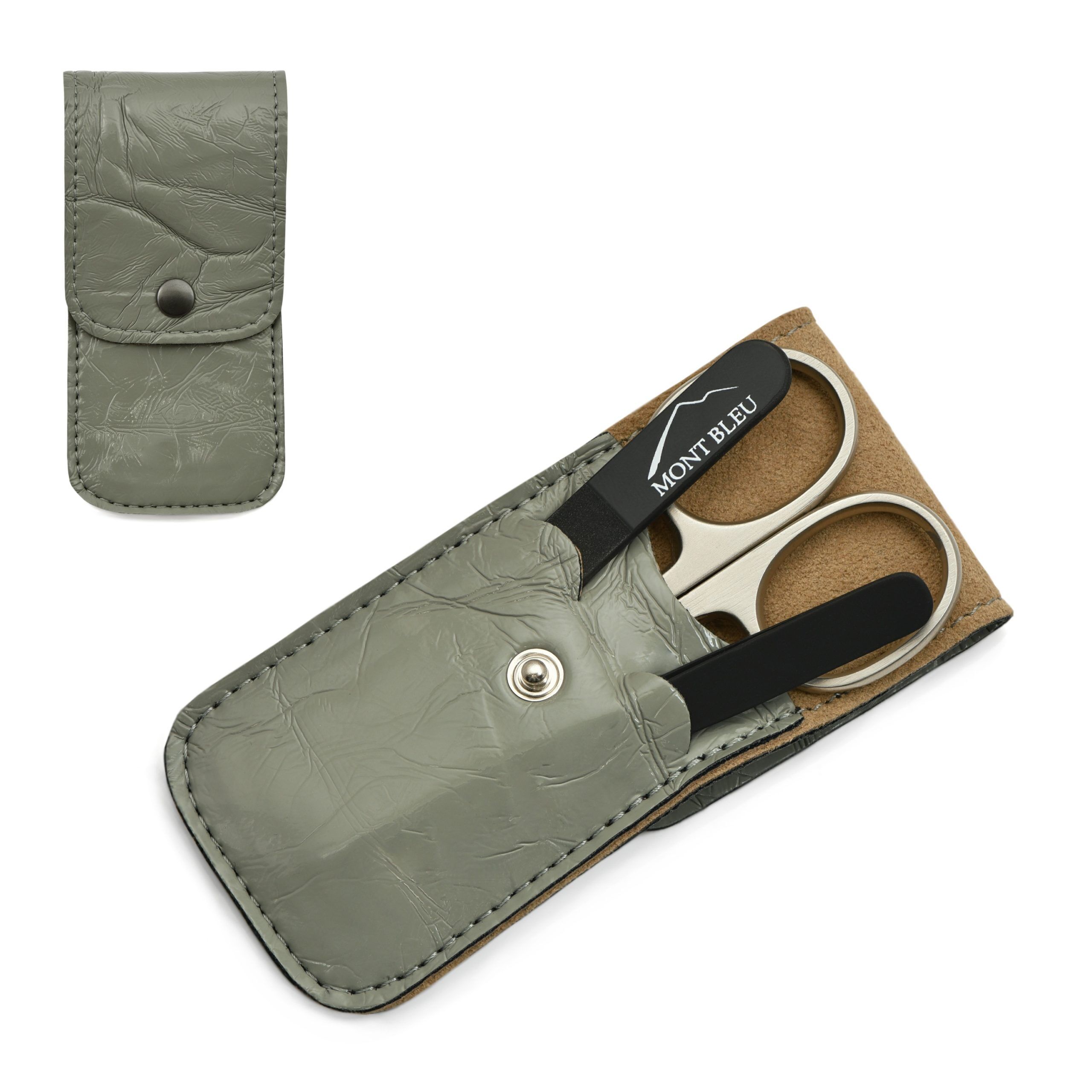 Set de manicura de 3 piezas Mont Bleu en estuche de cuero sintético, gris