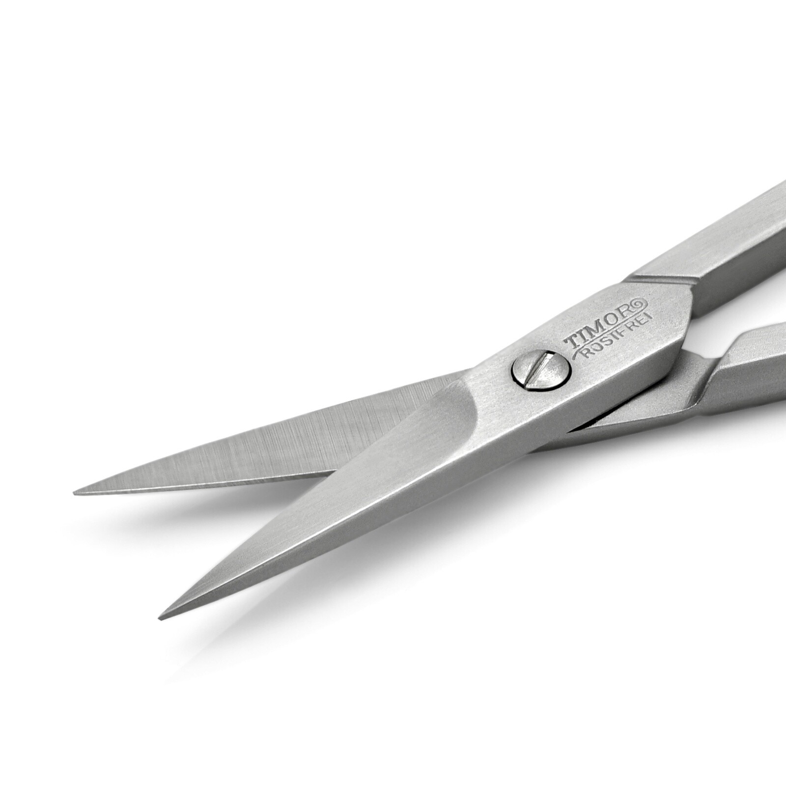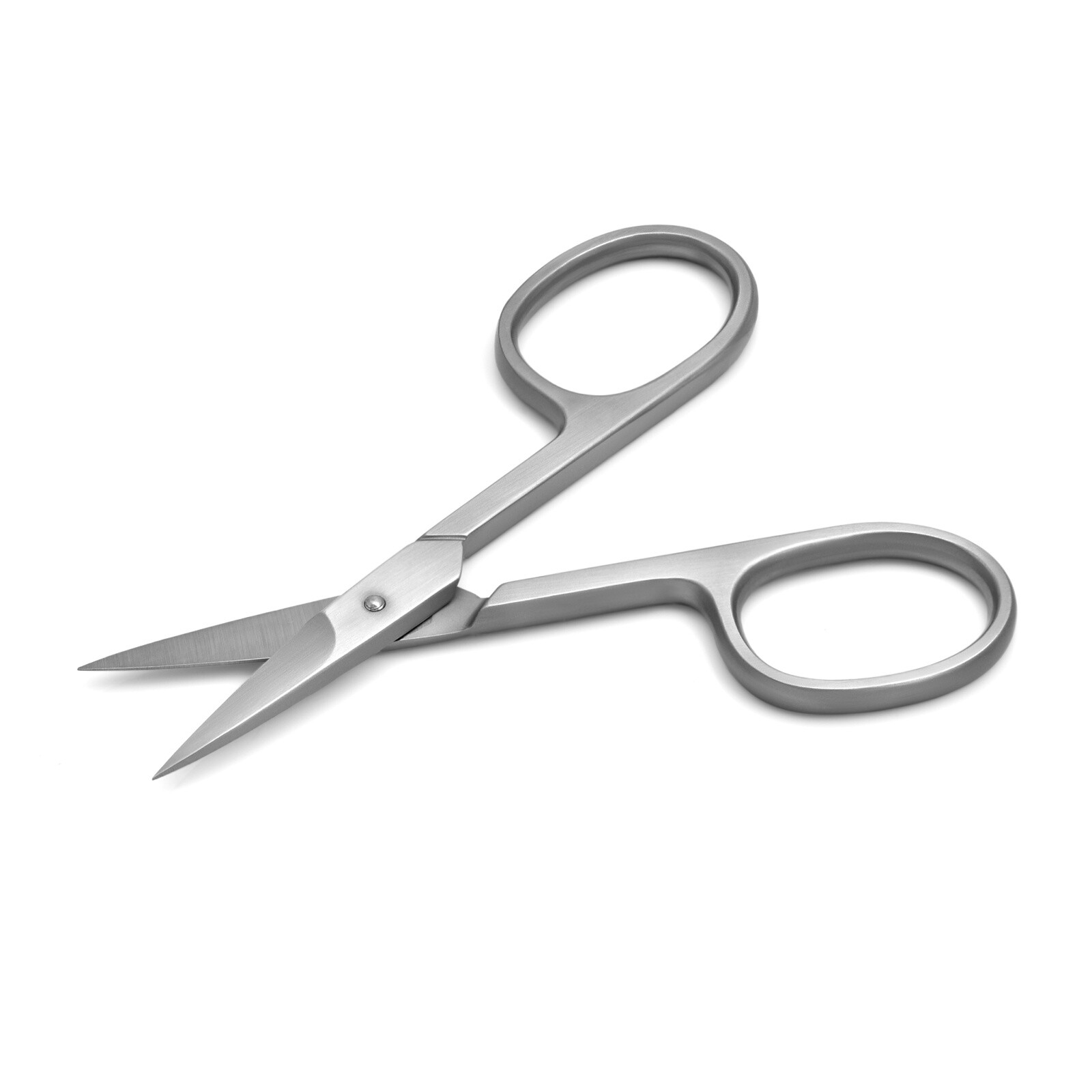 Tijeras de excelente calidad para uñas hechas en Solingen, Alemania, por una compañía tradicional de la zona con más de 80 años de experiencia en la fabricación de tijeras y herramientas para manicura de reconocida calidad Solingen. Las tijeras están hechas de acero inoxidable, lo que las hace anticorrosivas y de larga duración. Longitud de 9 cm / 3.5 pulgadas. La superficie tiene un acabado cepillado.