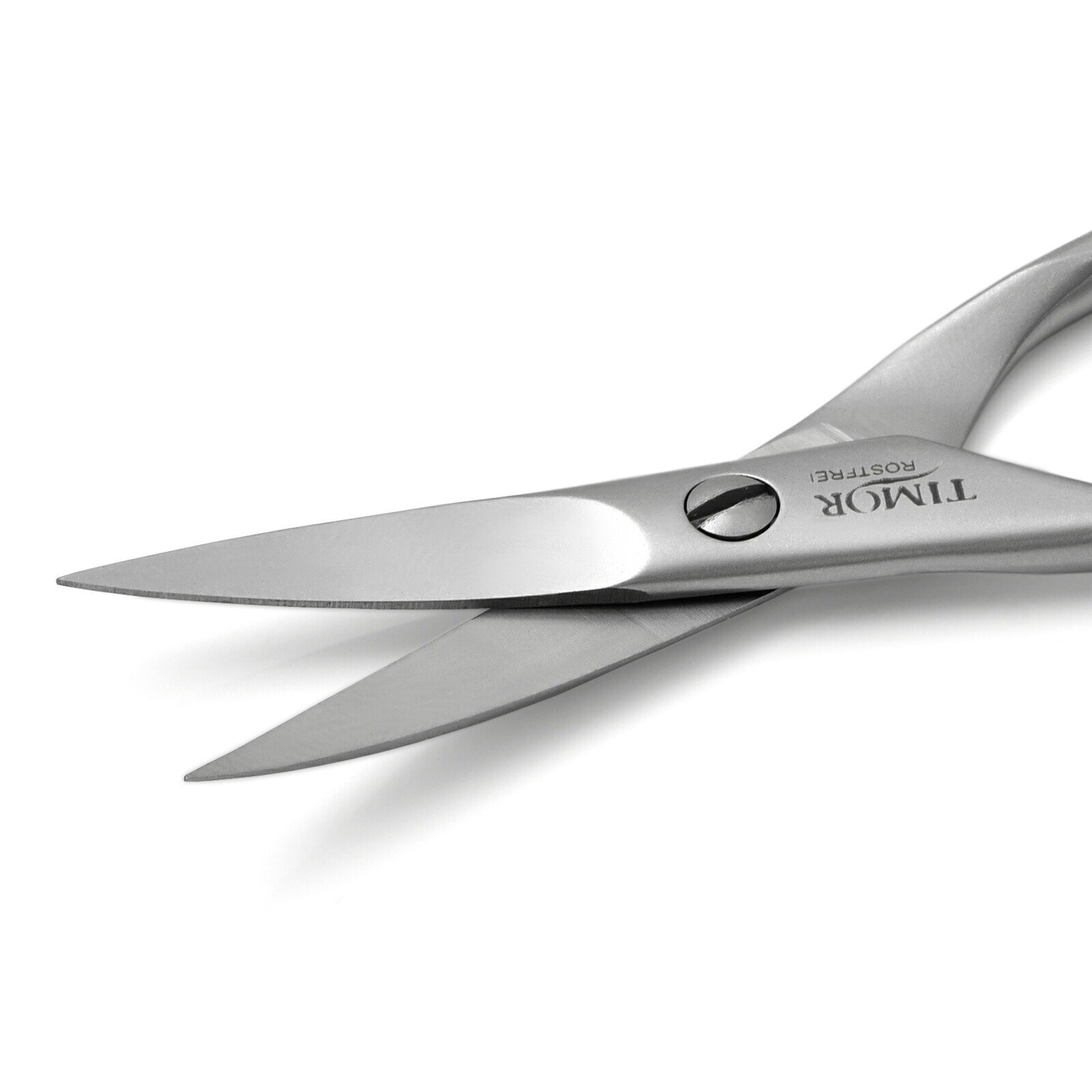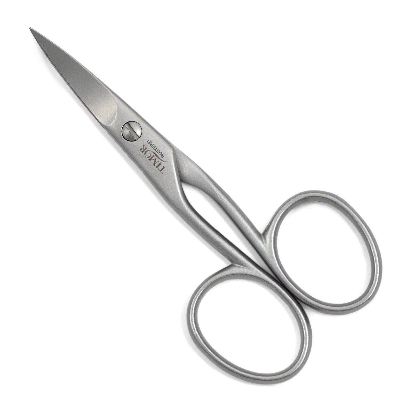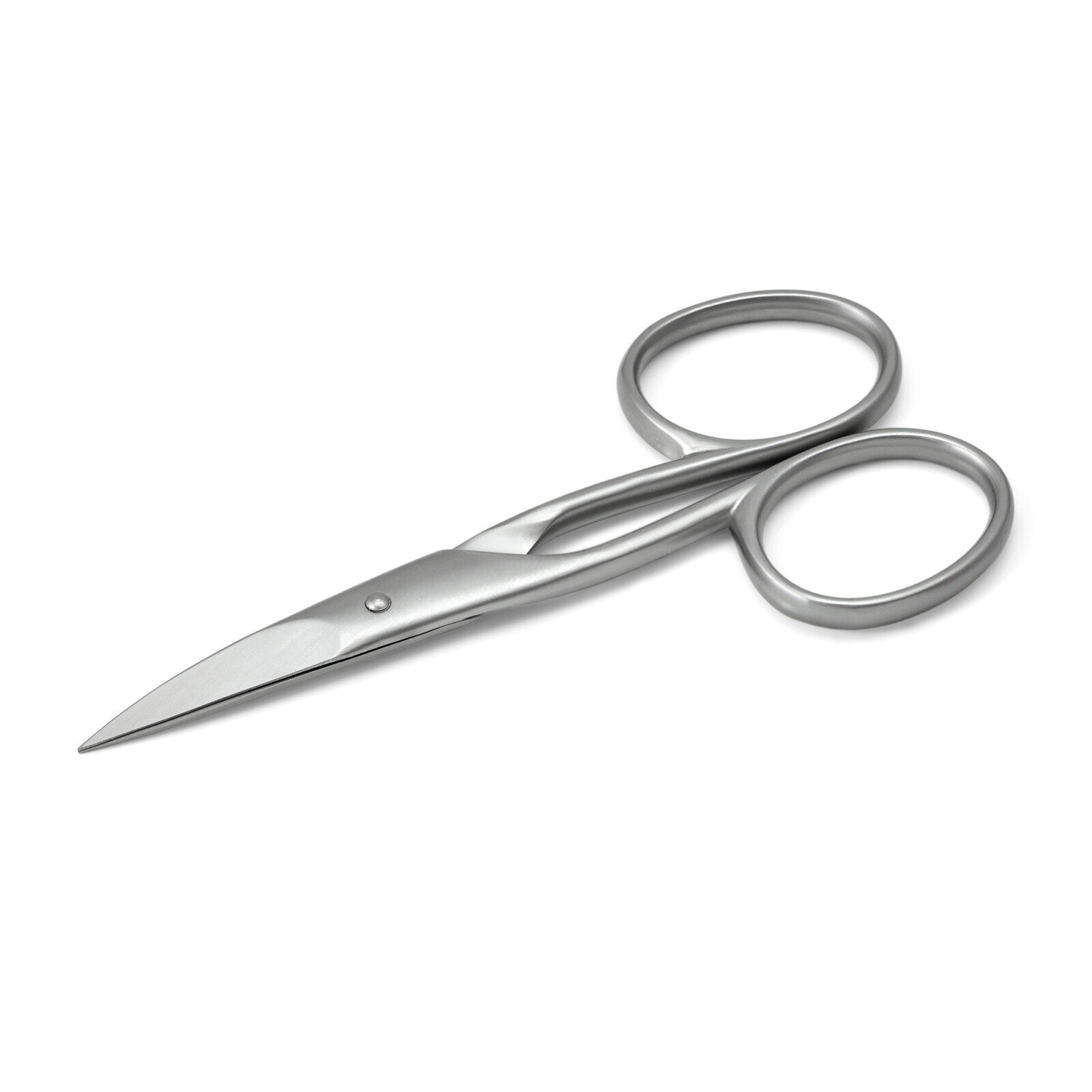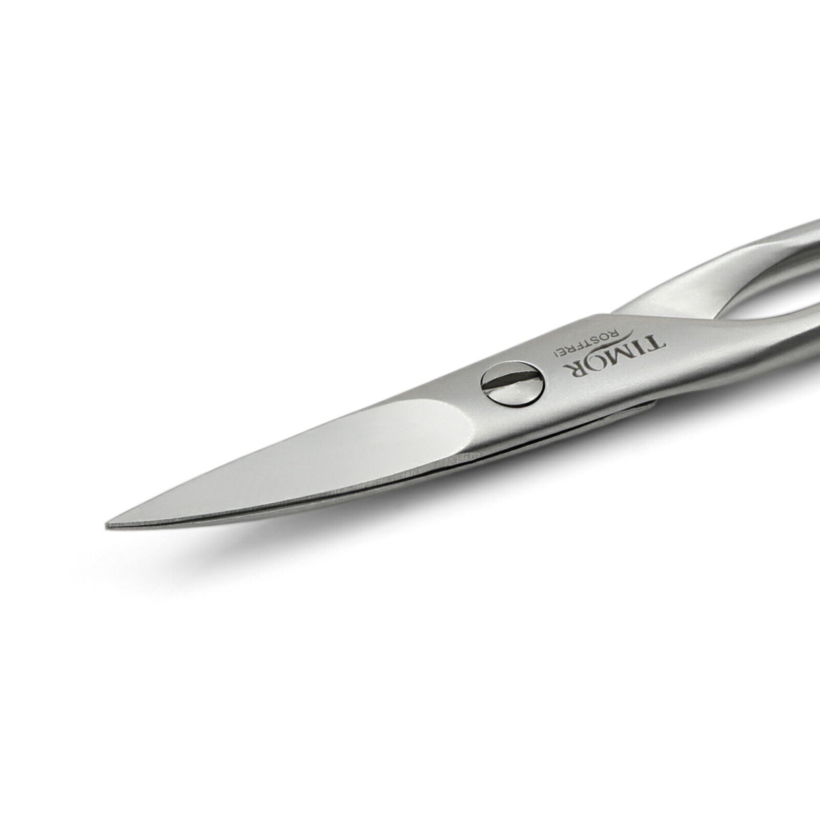 Excepcionales tijeras de uñas para zurdos, hechas de acero inoxidable en Solingen, Alemania. La superficie tiene un acabado cepillado.
