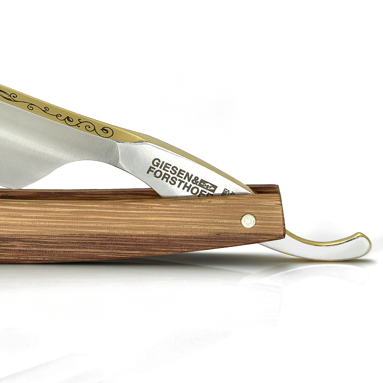 Même la lame a reçu un ascenseur supplémentaire avec une petite zone de gravure de précision et une finition dorée sur la colonne vertébrale. Il n'y a aucun doute sur la qualité exquise de cet accessoire de rasage haut de gamme.