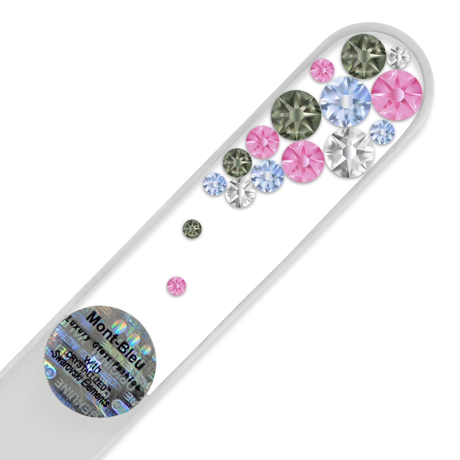 Chaque lime à ongles est faite à la main et ornée d’exquis cristaux de Swarovski pour un fini chic et élégant.