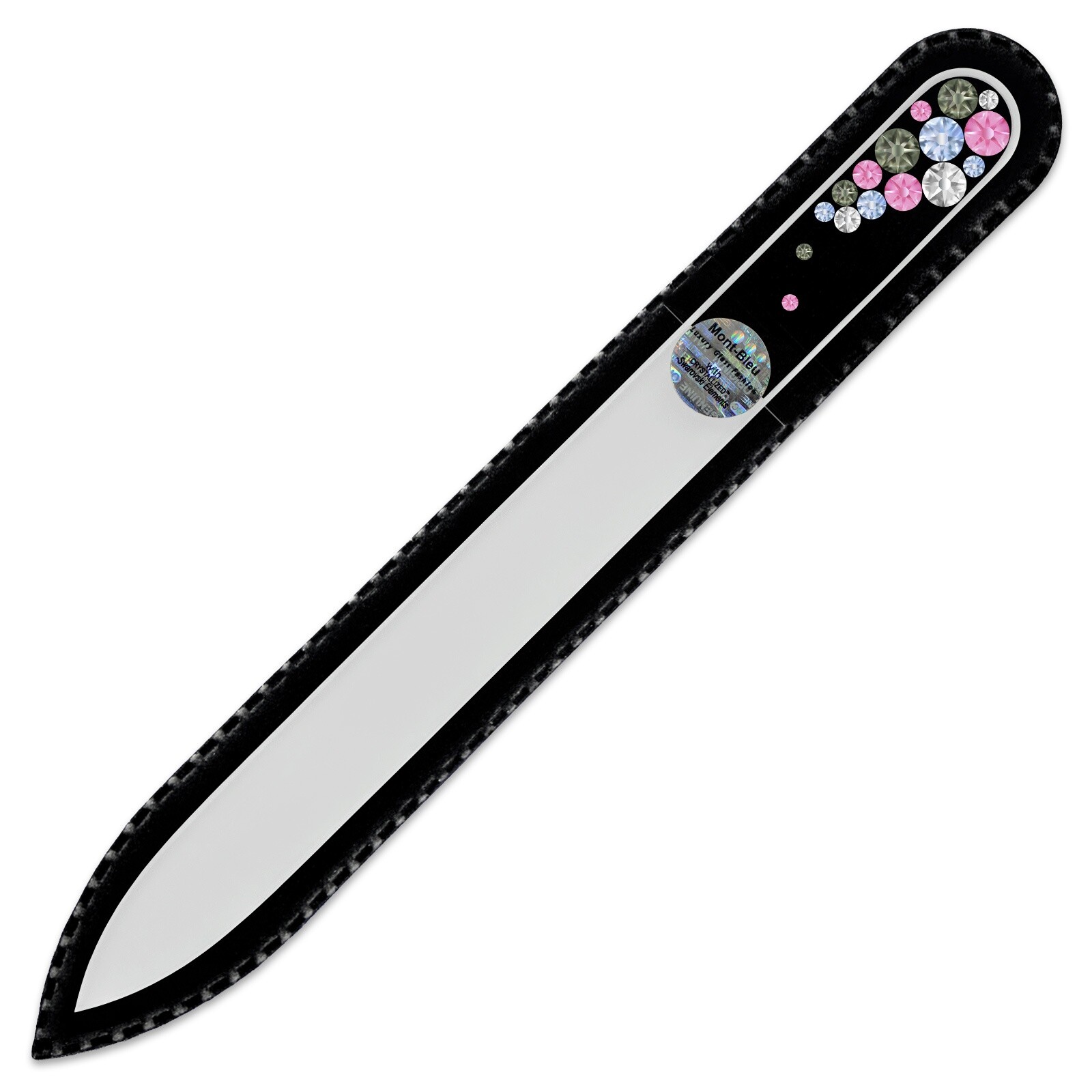 Élégant, durable et finement ouvragé, cet élégant lime à ongle est un must pour tout amateur de beauté. Le verre tchèque brillant est trempé pour une durabilité accrue et l’ensemble est livré avec une garantie à vie de la surface limante.
