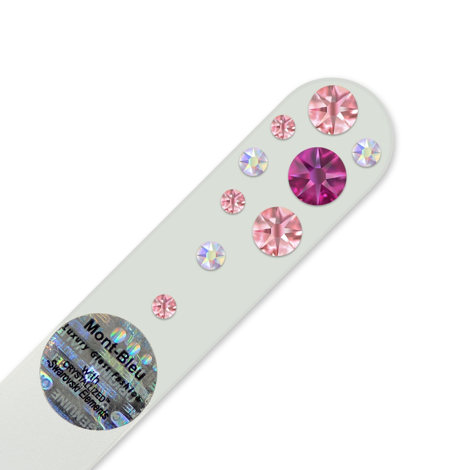Les petites limes en verre décorées de cristaux Swarovski sont un outil idéal pour le soin des ongles en voyage et à la maison. Ce fichier mesure 90 mm de long et est livré dans un étui en velours noir.
