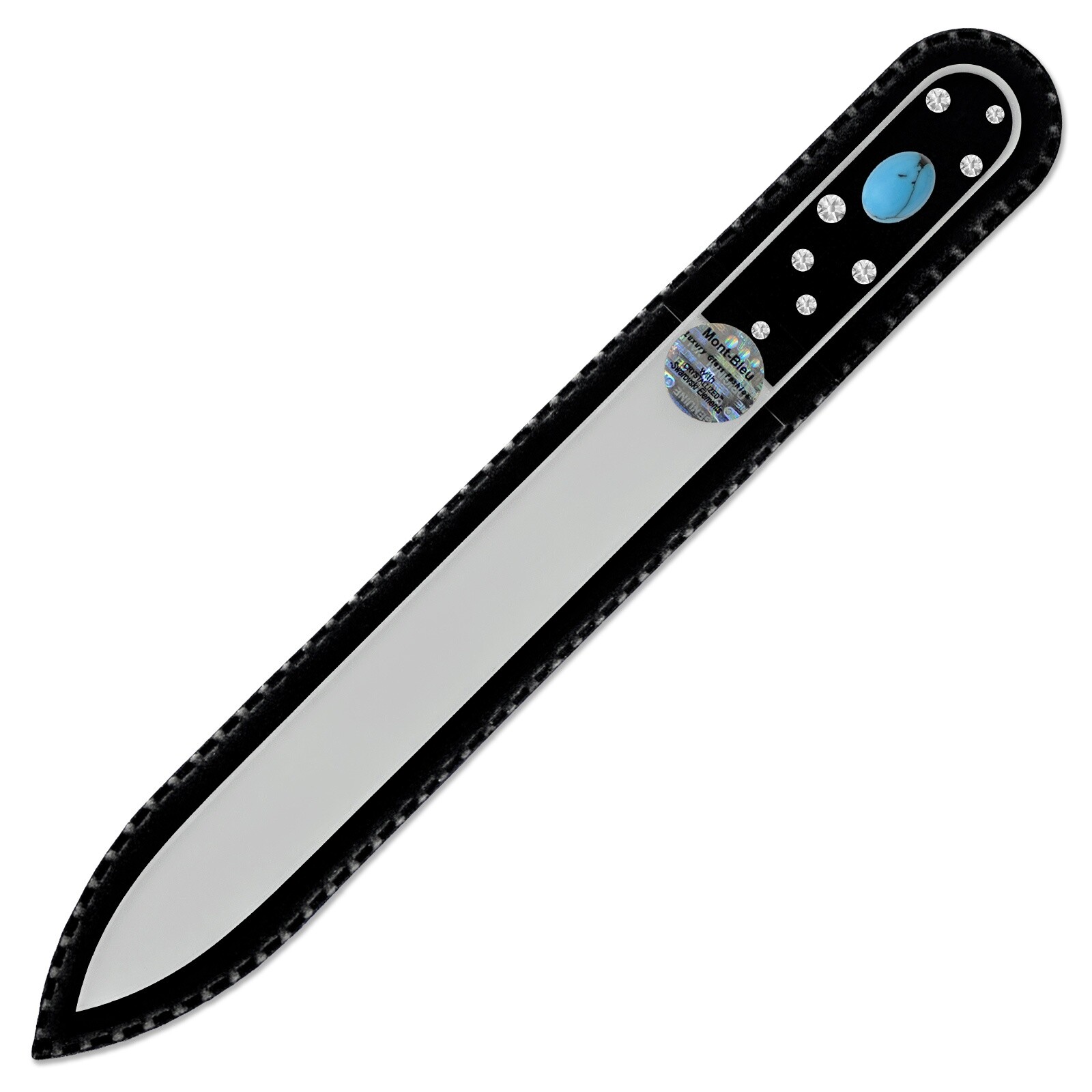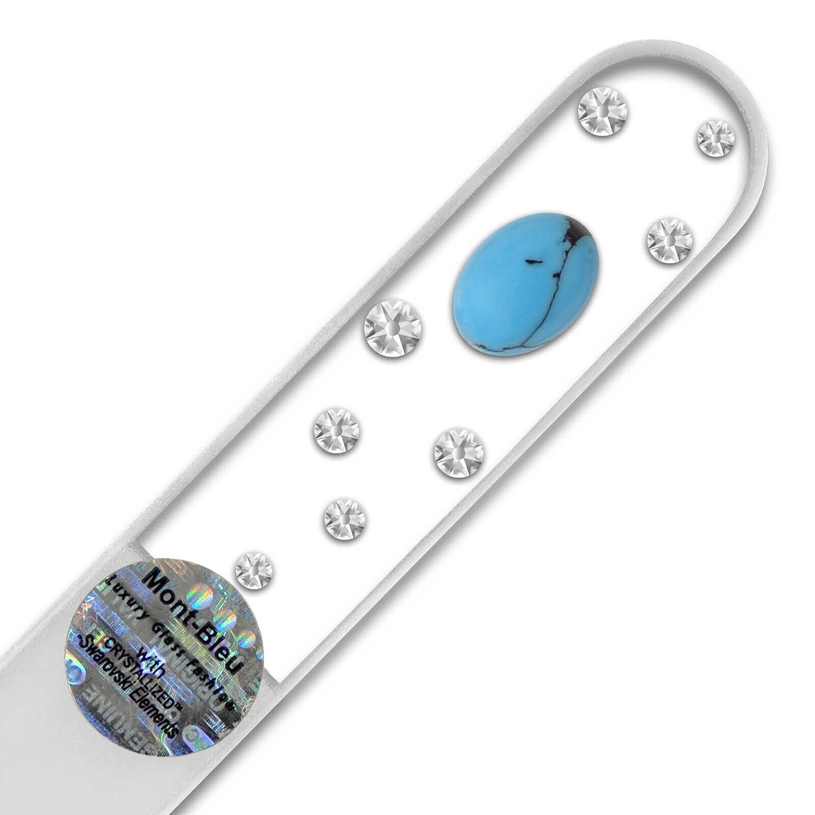 Lime à ongles en verre de Bohême avec cristaux et turquoise. Longueur du fichier 135 mm.