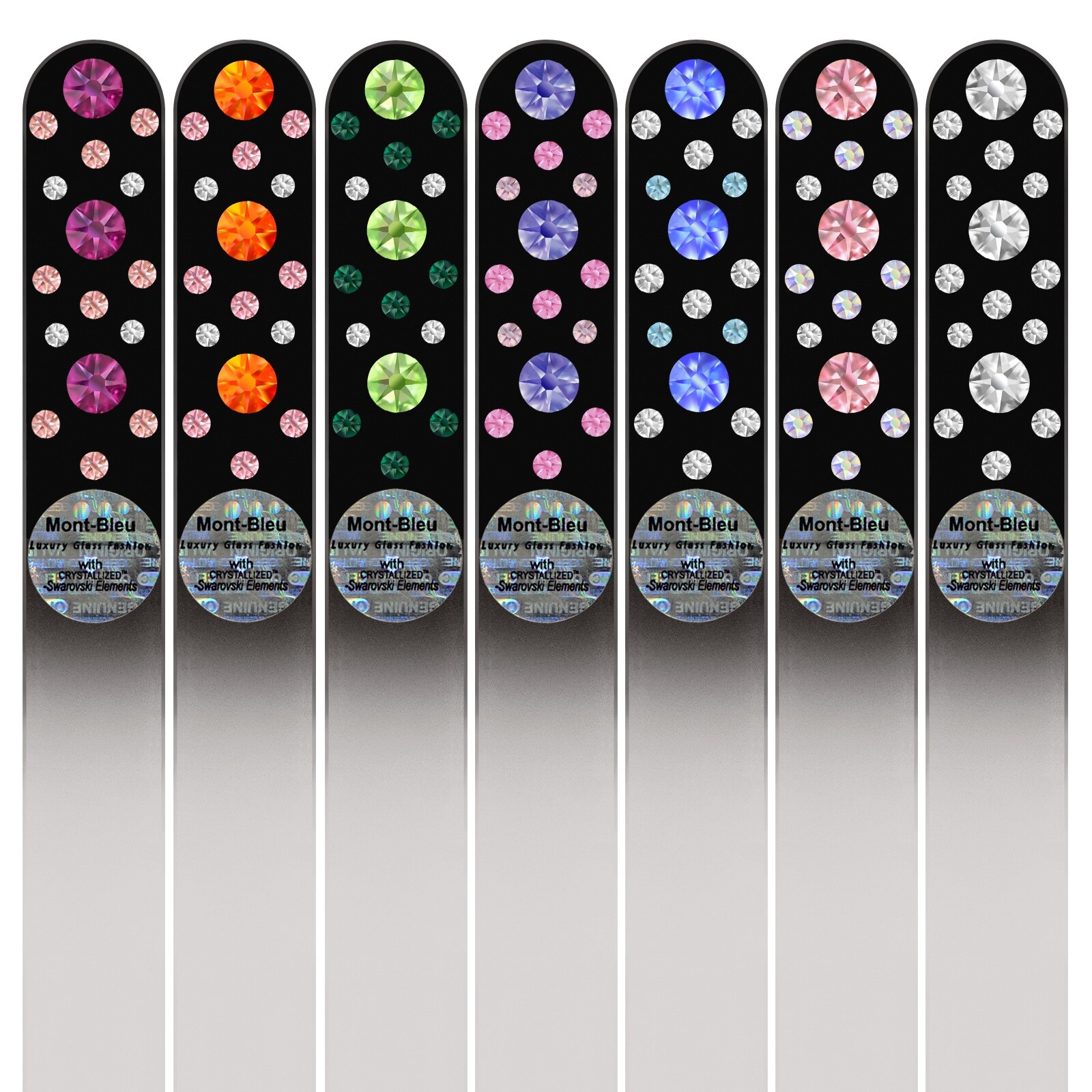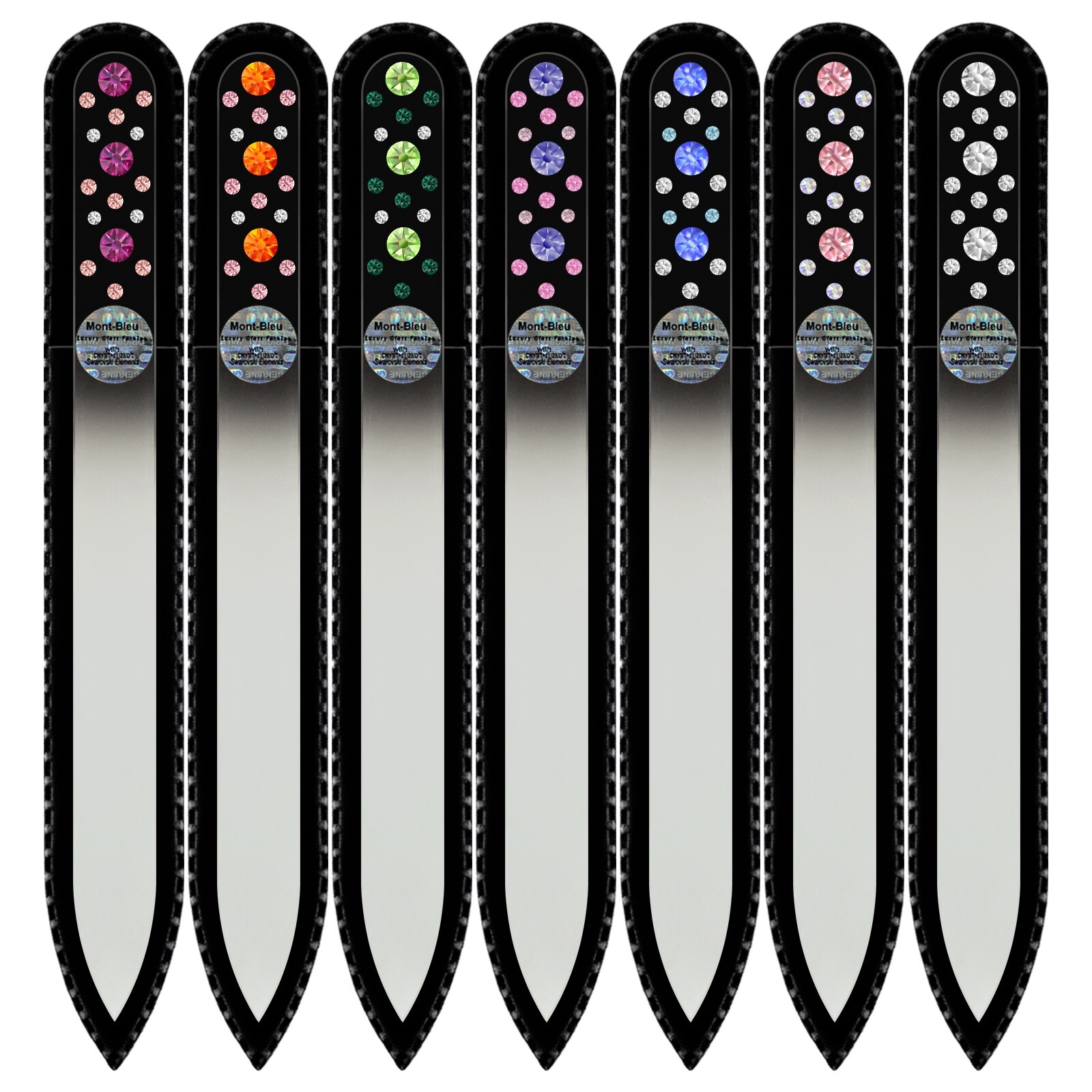 Les limes à ongles en verre ornées de cristaux Swarovski sont un cadeau parfait. Toutes les limes à ongles de la ligne crystal sont disponibles dans un étui en velours noir.