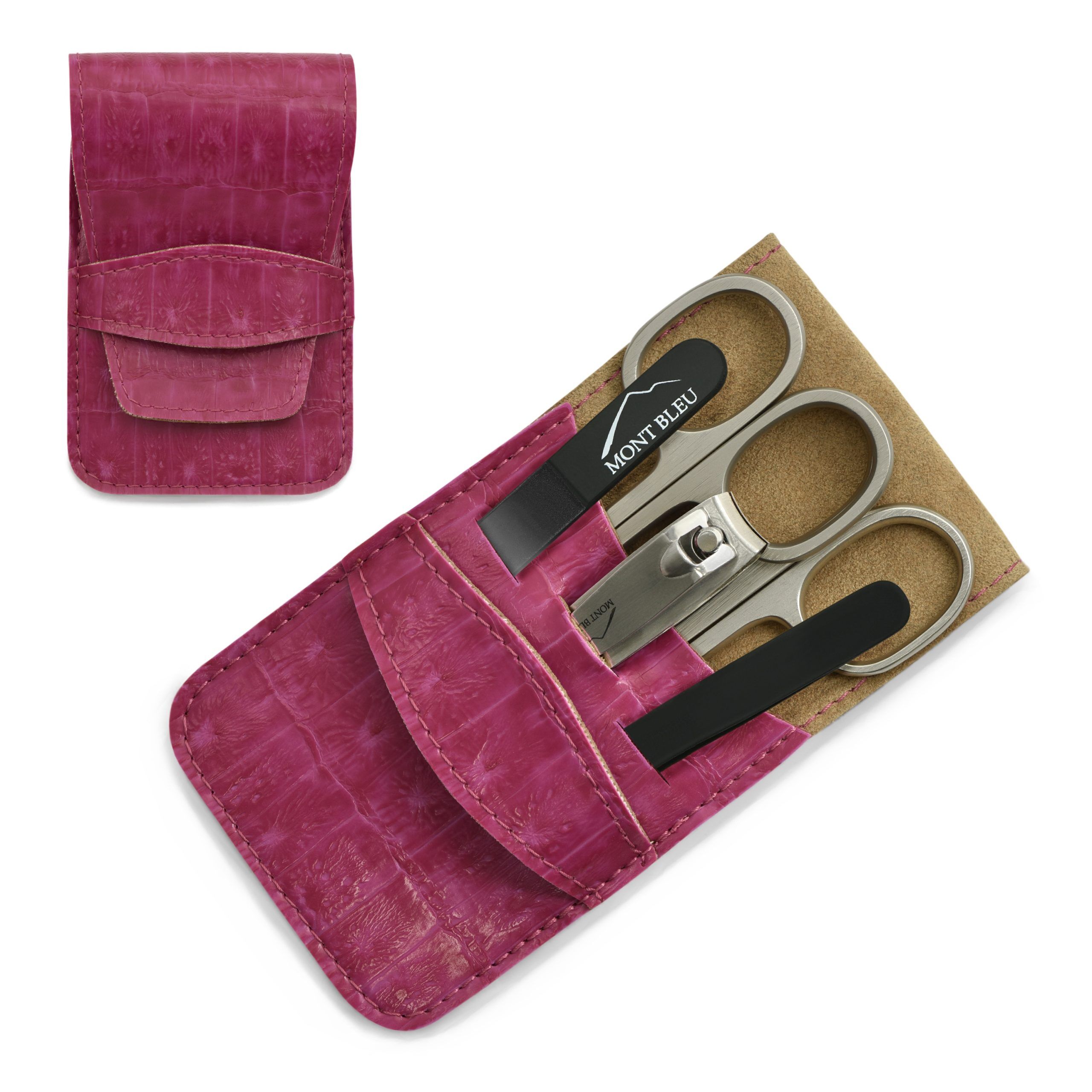Mont Bleu 5dílná manikúrová sada v koženém pouzdře z umělé kůže, růžová