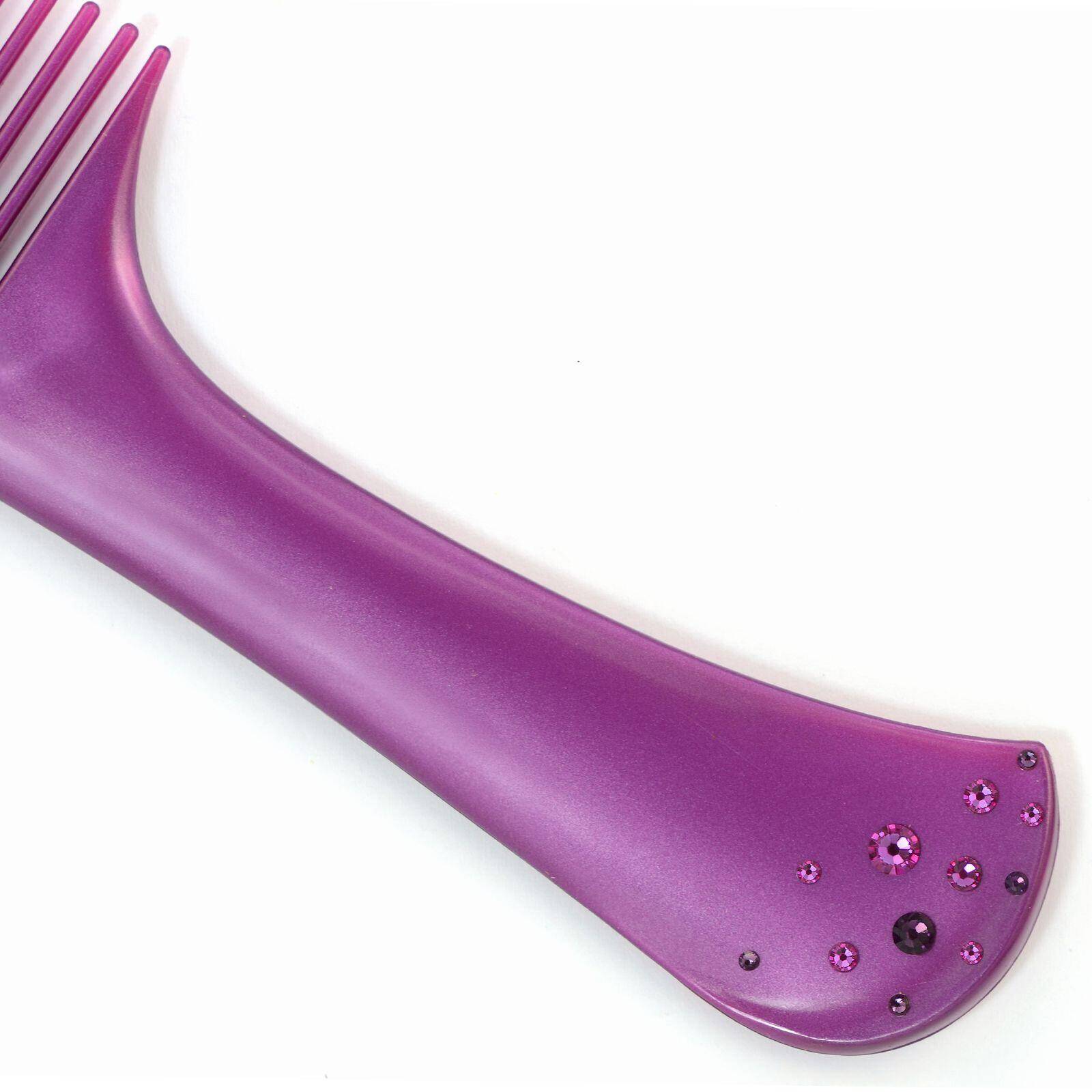 Mistrovský hřeben na vlasy zdobený křišťály Swarovski, s antistatickým efektem a ochranou vlasů při rozčesávání. Vzor “Stars”, v šeříkové barvě. Délka: 21.6 cm